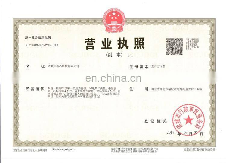 Zhucheng Hengshi Machinery Co., Ltd. is a professional supplier of sterilization equipment for food and beverage processing and pharmaceutical industry.The company is specialized in manufacturing all kinds of sterilization kettle, high temperature cooking pot, sandwich pot, wok and so on. The products are adopted by many food and beverage enterprises at home and abroad. The company has the pressure vessel manufacturing certificate (certificate No. : TS2237F40-2020) and the self-supporting import and export right (registration form No. 03554598).It has formed a network system integrating raw material supply, product development, process design, production and manufacturing, finished product inspection, storage and transportation, and after-sales service.