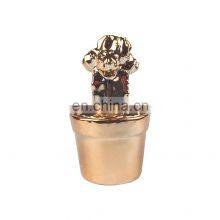 Custom Empty Luxury Elegant Cactus Gold Decorative Ceramic Candle Holder Jars With Lid