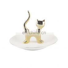 Luxury Gold Cat Ceramic Ring Jewelry Stand and Dish Holder Display