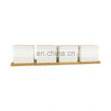 Custom Indoor Cube Square White Ceramic Flower Plant Succulent Planter Pot for Plants With Bamboo Tray Holder