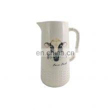 White Decorative Big Ceramic Hot Kettle Milk Jug Water Pitcher With Handle