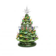 Mini Small Hand Painted Ceramic Christmas Xmas Artificial Tree Decoration Ornament With Led Lights