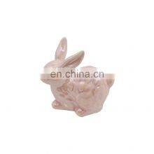 Pink Happy Personalize Easter Bunny Mascot Crafts Ceramic Gift Rabbit Figurine Home Decoration