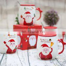 New Product Christmas Santa Claus Ceramic Mug With Lid and Spoon