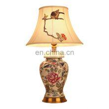 Chinese Style Flower and Bird Pattern Ceramic Table Lamp Hotel Table Lamp Bedroom Lamp