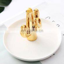 European-style Gold-plated Cactus Ceramic Jewelry Plate Jewelry Ring Storage Rack Creative Home Decoration