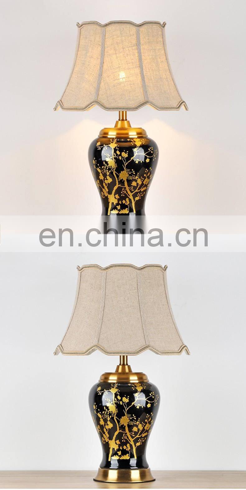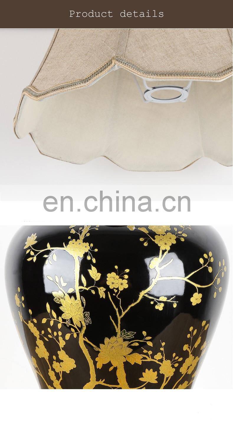 Chinese Style Ceramic Black and White Gold Table Lamp Hotel Ceramic Table Lamp