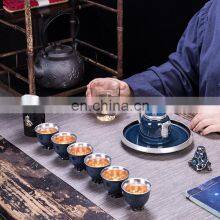 Yaobian Tianmu Glaze Gilt Silver Tea Set Set in Three Colors, Black, Red and Blue