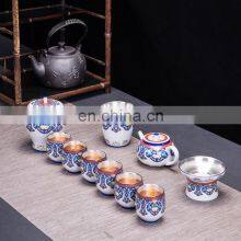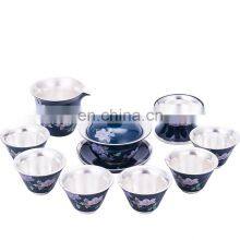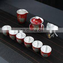 Gilt Silver Tea Set Household Kung Fu Silver Tea Cup Imitation Enamel Set