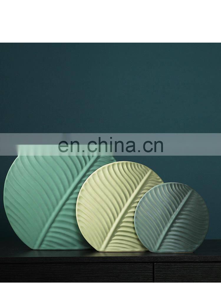 Nordic Living Room Decorations Desktop Creative Green Leaves Ceramic Vase Ornaments