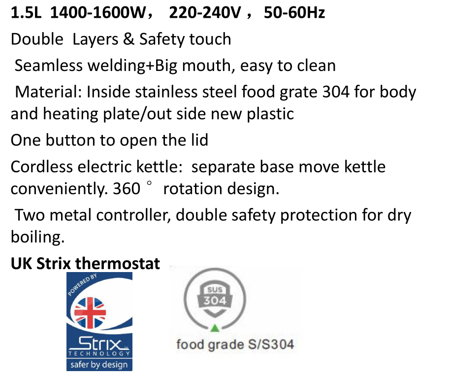 SUS 304 Electric Kettle (Wechat:13510231336)