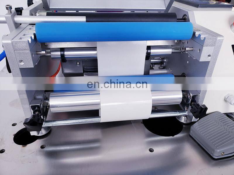 Hot Sell Security Semi Automatic Tabletop Two Sides Sticker Round Bottle Labeling Machine is suitable for labeling of various specifications of cylindrical objects, which can achieve full cycle / half cycle labeling / front and back of the circumference labeling; the spacing between the front and back can be adjusted arbitrarily; The intelligent degree is higher, the operator only needs to put the product and take the product; Automatic completion of pneumatic switch, reduction of operation procedures, widely used in food, cosmetics, chemicals, wine, medicine and other industries;Applicable label: adhesive label, adhesive film, transparent label, electronic supervision code, barcode, etc