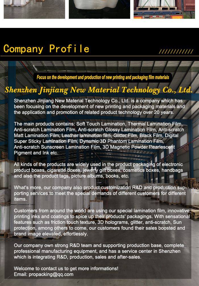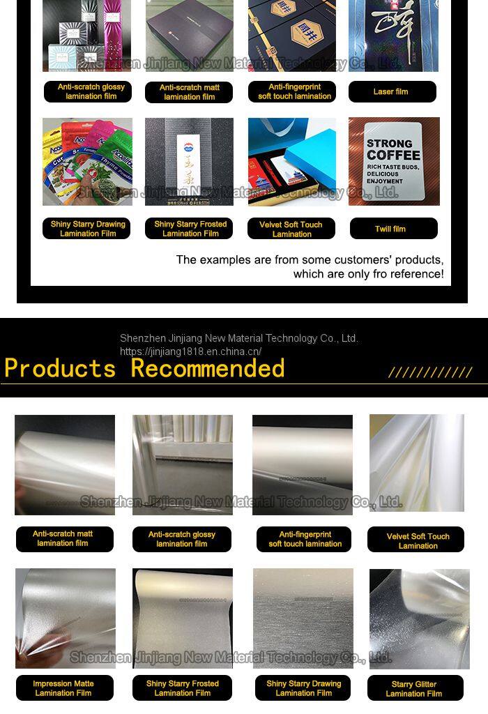 Digital Packaging & Printing High Viscosity Laminating Bopp Films Velvet Soft Touch Thermal Lamination Film