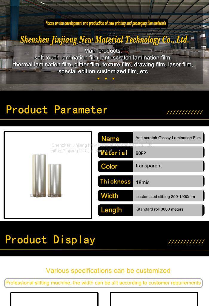 18mic BOPP Scratch and Abrasion Resistant Function Anti-scratch Glossy Lamination Film