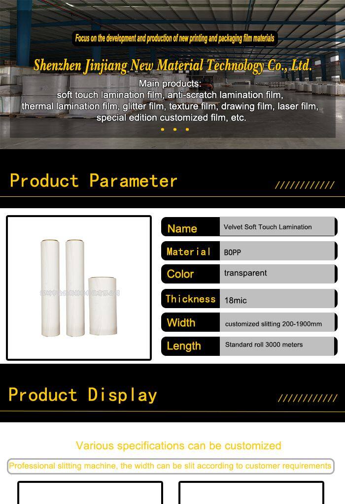 Digital Packaging & Printing High Viscosity Laminating Bopp Films Velvet Soft Touch Thermal Lamination Film
