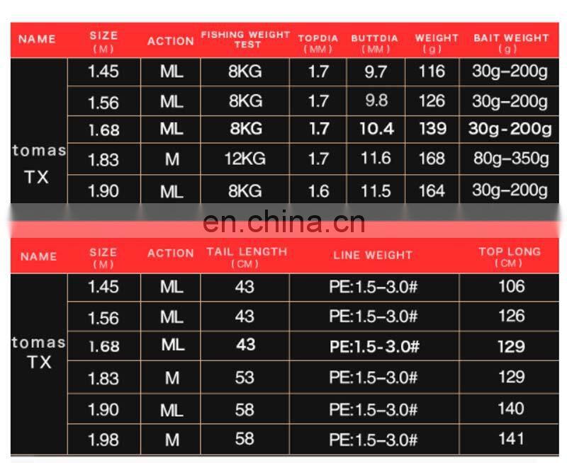 Home > Products > Fishing Rod > High Quality 1.45/1.53/1.68/1.83/1.9/1.98m Slow Jigging Rod M/ML New Solid Carbon Jigging&Boat Fishing Rod