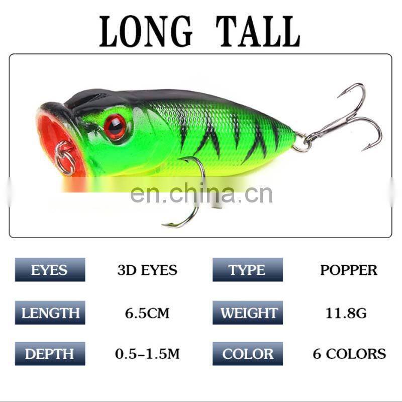 Home > Products > Hard Lure > New 6.5cm/10g Plastic Popper Fishing Lure Bait Colorful Paint Hard Floating Fishing Lures