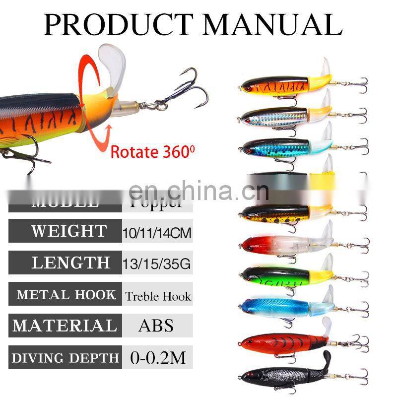 Whopper Topwater Pencil Popper Lures 15g 11cm Lifelike Hard Bait Propeller Fishing Lures