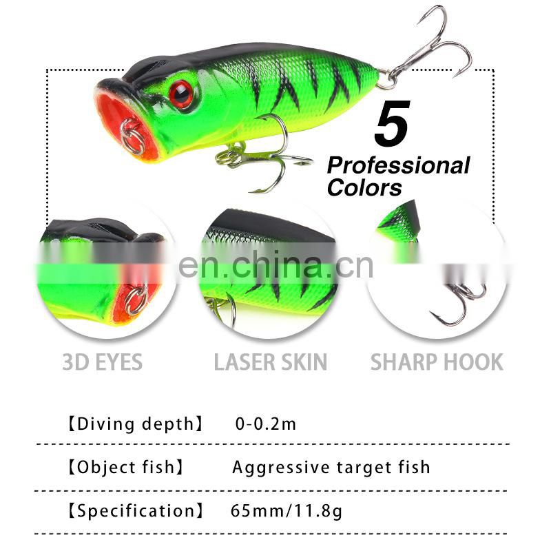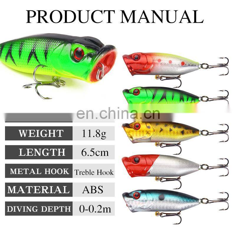 Home > Products > Hard Lure > Topwater Popper Lures 11.8g 6.5cm Lifelike Hard Bait Fishing Lures for Sea Fishing Freshwater Fishing