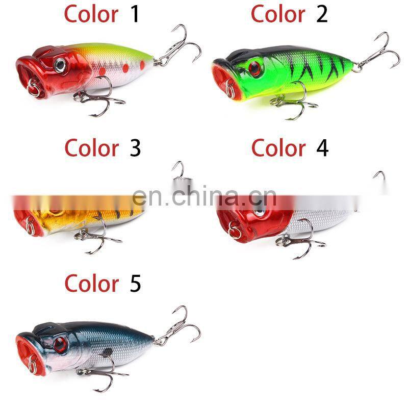 New 55mm/6.5g Fishing Hard Lure Plastic Poppers Baits Top Water Lures With Strong Treble Hooks