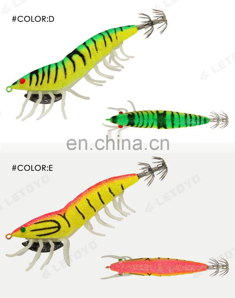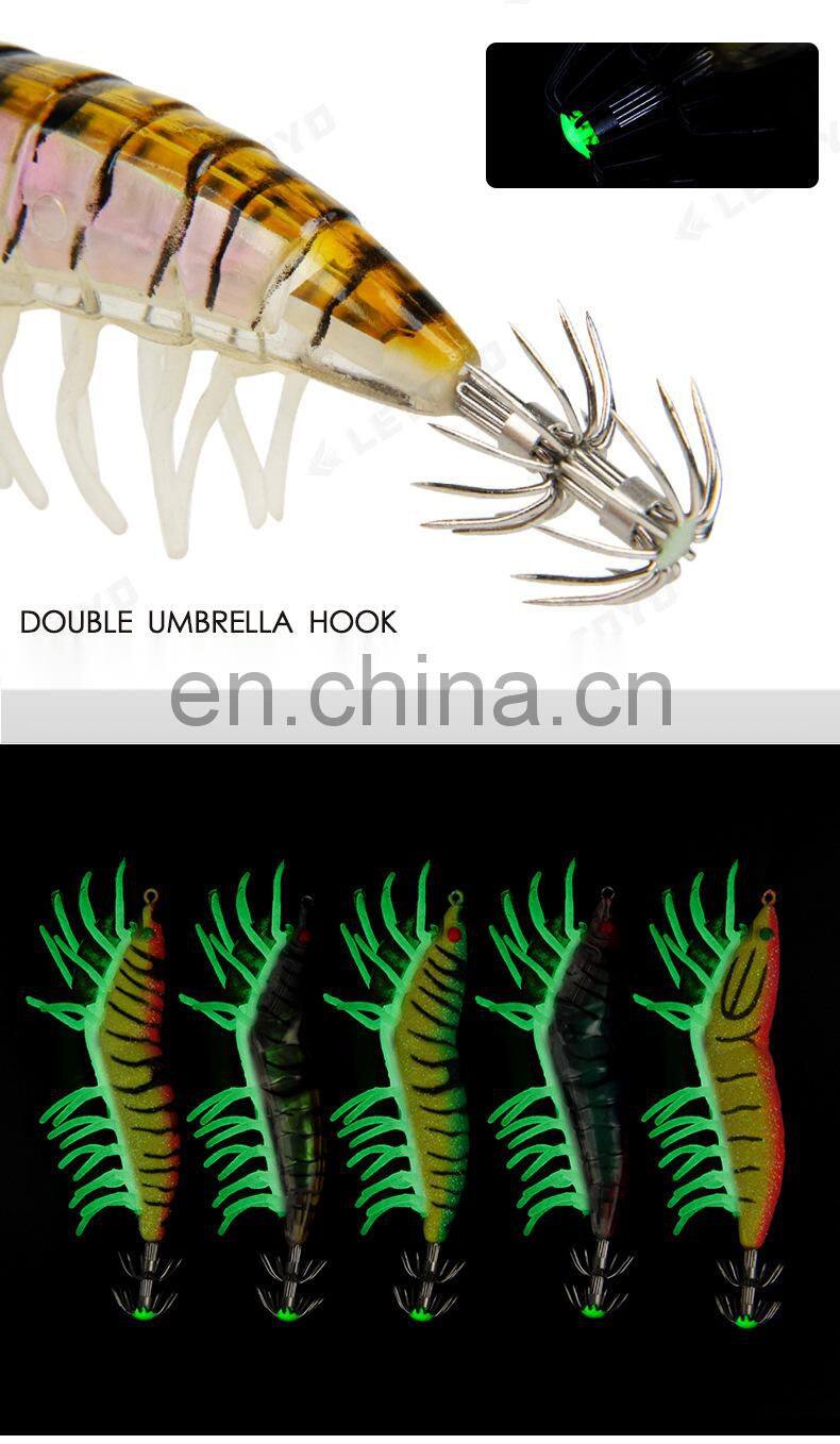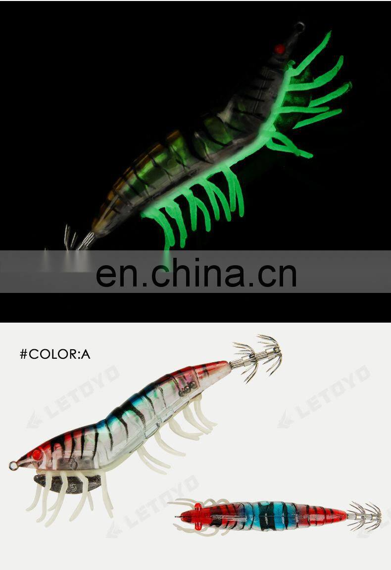 High Quality 7.5cm/12g Size Hard Shrimp Bait 11Colors Luminous Squid Fishing Lures Wood Shrimp
