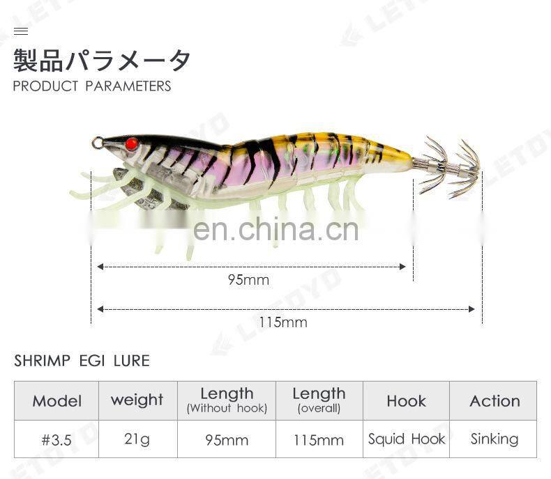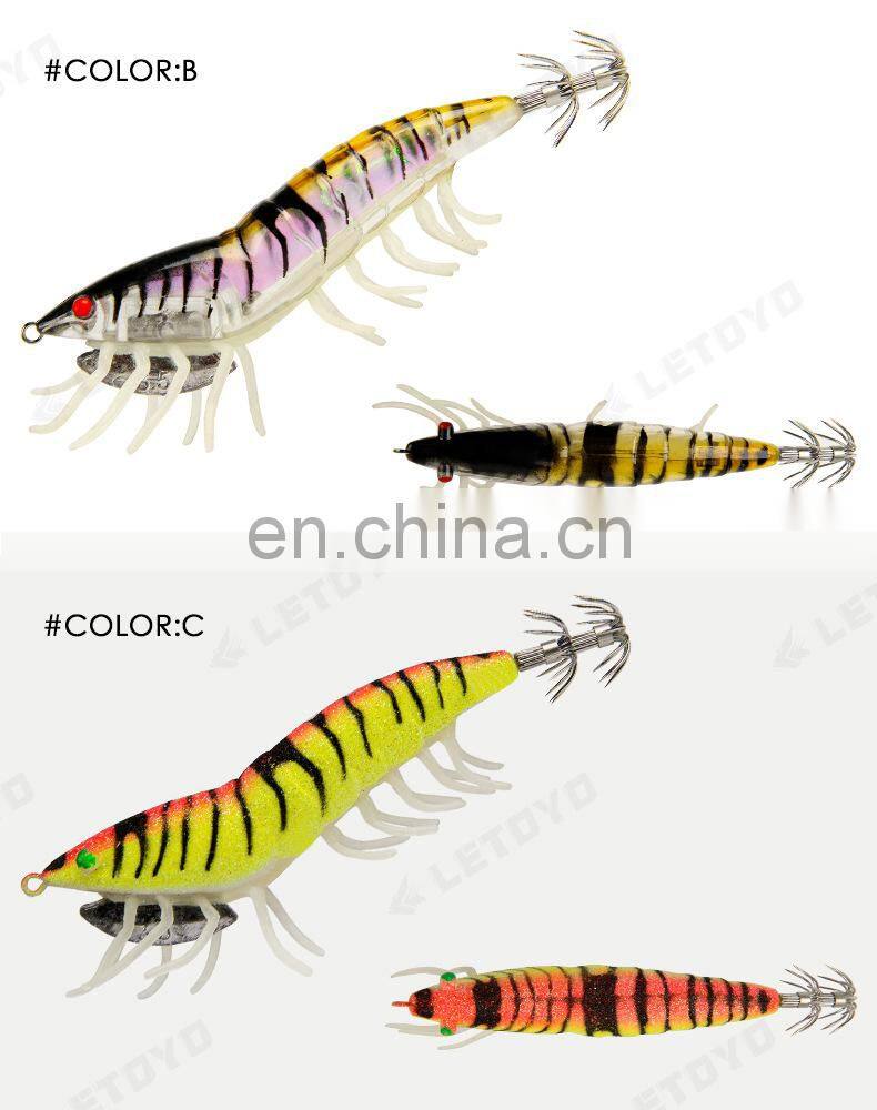 Home > Products > Hard Lure > New 95mm/21g Size Hard Wood Shrimp Baits High Quality 5colors Luminous Squid Lures