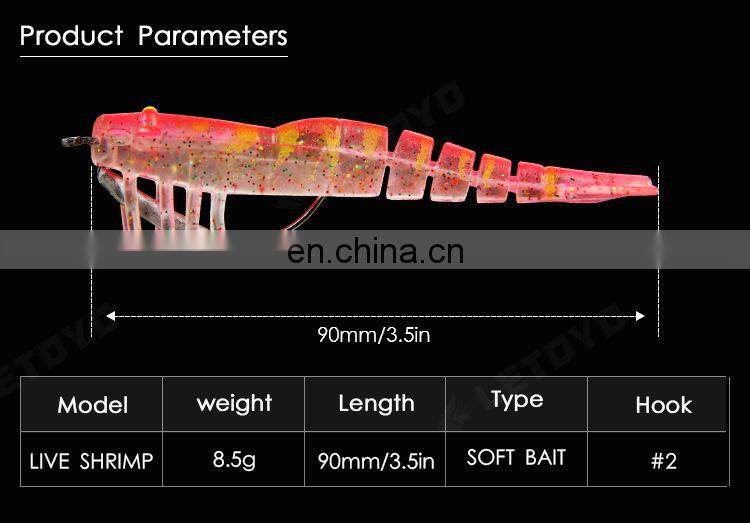 Home > Products > Soft Lure > New 90mm/8.5g Size Live Shrimp Fishing Soft Baits Luminous Eyes Sea Bass Lure Saltwater Shrimp Baits