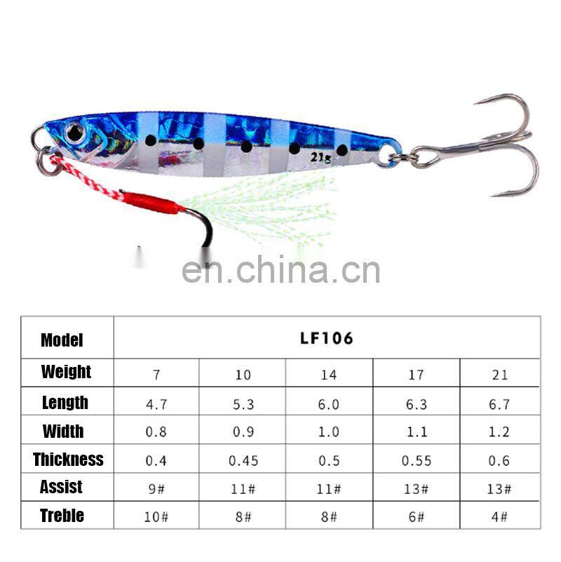 Home > Products > Metal Lure > Amazon 7g 10g 14g 17g 21g Wholesale Assist +Treble Hook Metal Jigs Lure Small Freshwater Saltwater Casting 21g Fishing Jigs