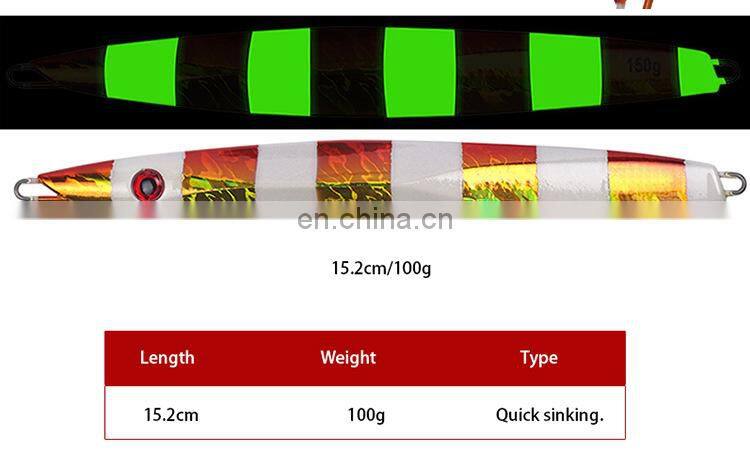Home > Products > Metal Lure > 15.2cm 100g Luminous Long Cast Box Packaging Jig Hook Metal Quick Sinking Fish Fishing Lure Jig