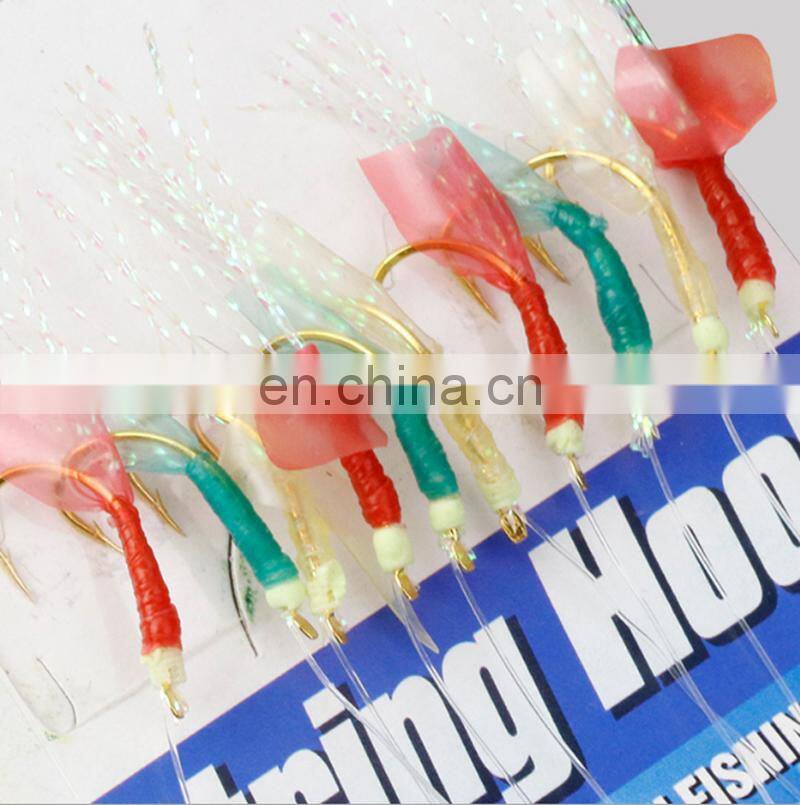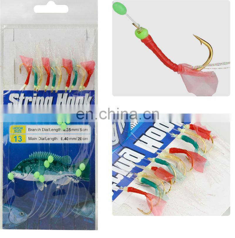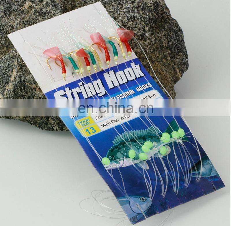 Home > Products > Fishing Hook > Amazon 7-15# Multi Color Artificial Fish Skin Barrel Swivel Luminous Beads String 10 Hooks Sabiki