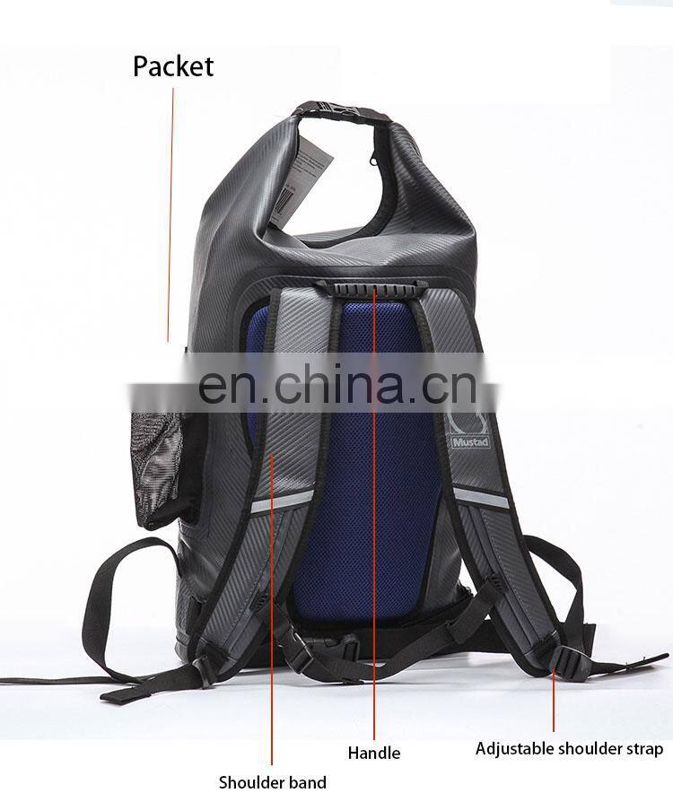 Mustad MB010 Backpack PVC Multi-Purpose Waterproof Bag Large Capacity Outdoor Sports Tackle Fishing Bags Pesca Lure Side Mesh