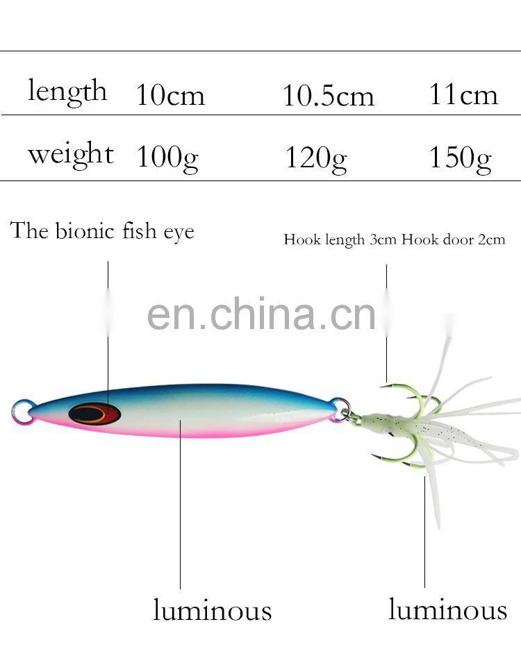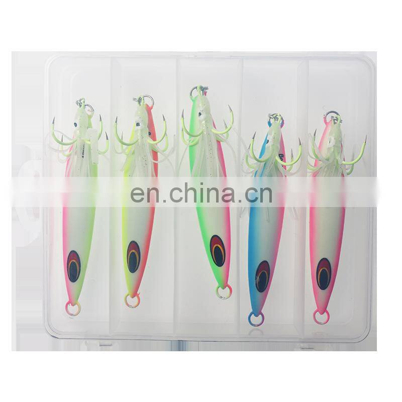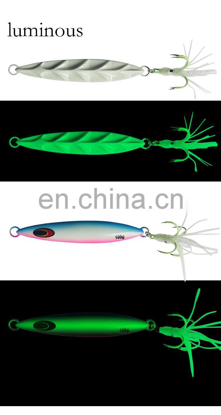 Hot Sale Metal Fishing Lure40g 60g 80g Lead Luminous Jigging Bait Slow Jig Fishing Squid Lures With Hooks