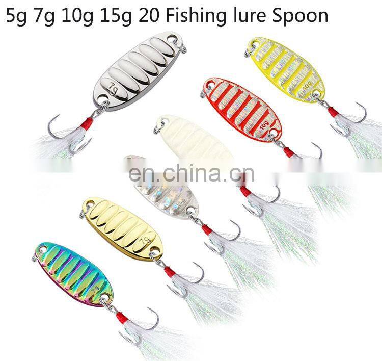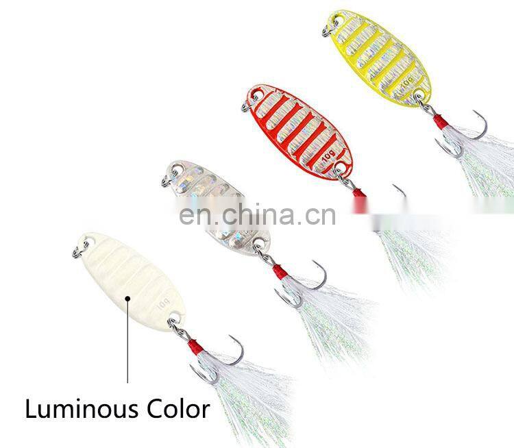 Home > Products > Fishing Lure > Metal Spinners Spoon Lures 5g 7g 10g 15g 20g Artificial Bait With Feather Hook Night Fishing Tackle for Bass Pike Perch