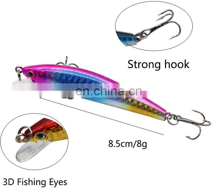 Home > Products > Fishing Lure > Minnow Wobblers Fishing Lures 8.5cm 8g Trout Artificial Plastic Hard Bait Jerkbait Crankbait Bass Fishing Tackle