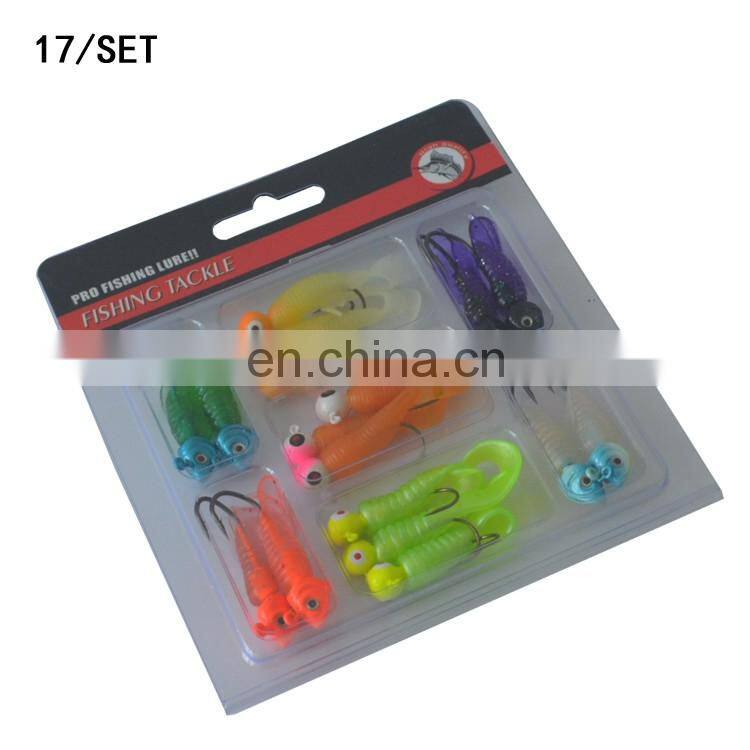 17pcs Per Box Jig Head Lead Hook Artificial Soft Lure Bait Kit Fishings Tackle Grub Sea Worm for Fishing Isca Pesca