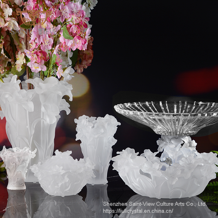 Pate de Verre Crystal Glass Wedding Centrepiece Sakura Flower Vase H30cm