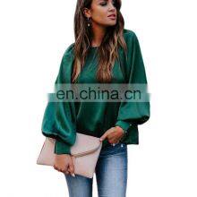 Factory Direct Sales of Women's Pullovers Autumn and Winter New Silk Fashion Long Lantern Sleeve Round Collar Solid Color