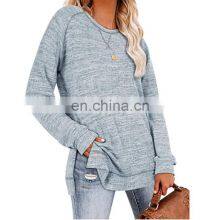 Wholesale Custom Women's Tops Autumn and Winter Western Style New Fashion Solid Color Cross Patch Loose Round Neck