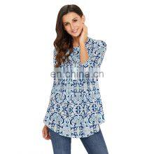 Wholesale Custom Women's Tops Large Size Printing T-shirt Western Style Mid-length 3/4 Sleeve Round Neck Folds Women's Top