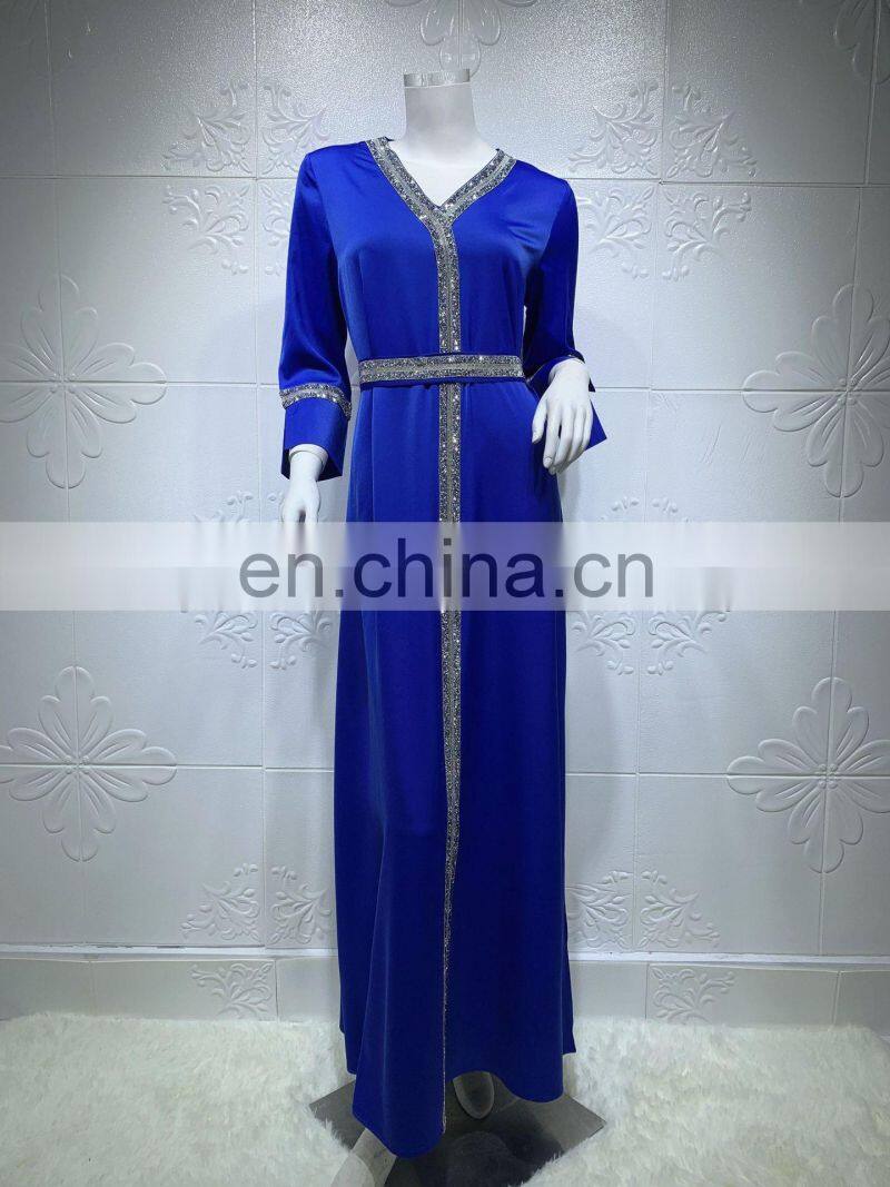 Diamond-studded Muslim Middle Eastern Women's Belt Robe Abaya Turkish Long Muslim Women's Clothing