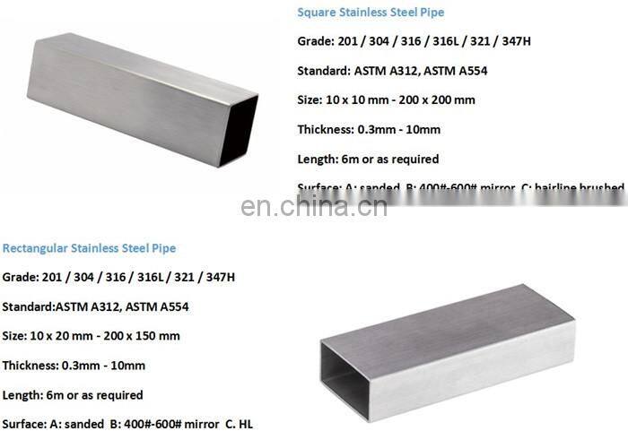 Home > Products > Stainless Steel Pipe/Tube > 321 310 Ss201 316l Tube Asme Sa-240 304 Stainless Steel Square Pipe