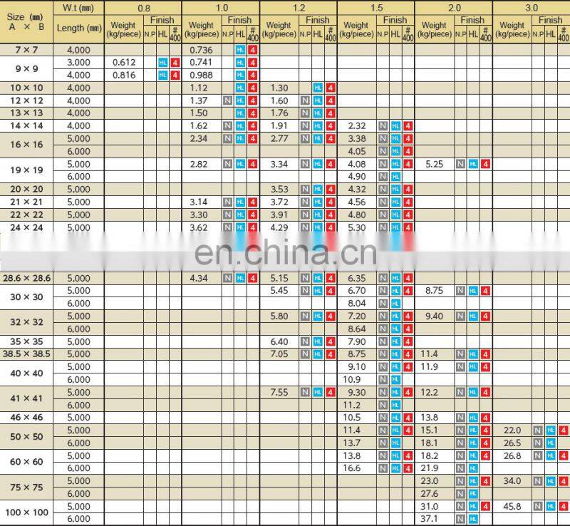 SS304(Ni 8.0%-12.0%)  | Mirror:600G/800G  | ||