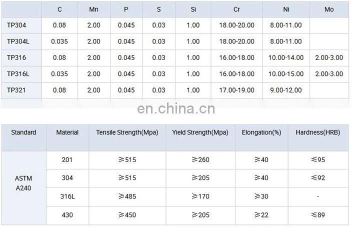 Grade  | Austenitic: 304/L/H/N, 316/L/H/N/Ti, 321/H, 309/H, 310S, 347/H, 317/L, 904L Duplex steel: S31803,S32205,S32750,S32760  |