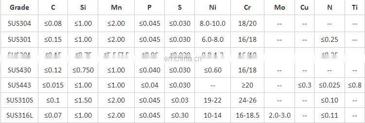 Material | 200 series: 201,202,202Cu,204Cu, 300 series: 301,303/Cu,304/L/H,304Cu,305,309/S,310/S,316/L/H/Ti,321/H,347/H,330, 400 series: 409/L,410,416/F,420/F,430,431,440C,441,444,446, 600 series: 13-8ph,15-5ph,17-4ph,17-7ph(630,631),660A/B/C/D, Duplex: 2205(UNS S31803/S32205),2507(UNS S32750),UNS |