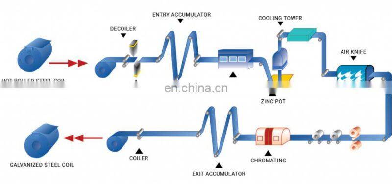 Galvanized steel coil production is a sheet steel which is put into the fusible zinc pot and there is some zinc on its surface.