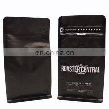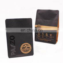 Customized Aluminum Lined Black Side Gusset Stand up Pouch Ziplock With Valve Flat Bottom Coffee Bags With Matte Surface