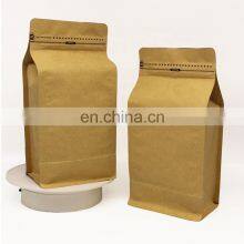Custom Bio Degradable Packaging Flat Bottom Kraft Paper Coffee Packaging With Tear off Zipper and Valve