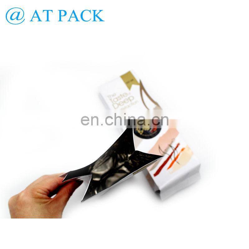 Custom Printed Flat Bottom Zip Lock Aluminum Foil Coffee Packaging Bag With One Way Valve