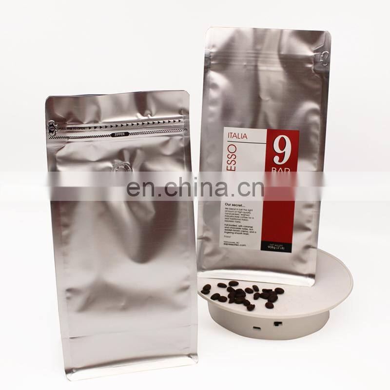 Custom Printed Flat Bottom Coffee Bag With Valve Aluminium Foil Bag for Coffee Packaging