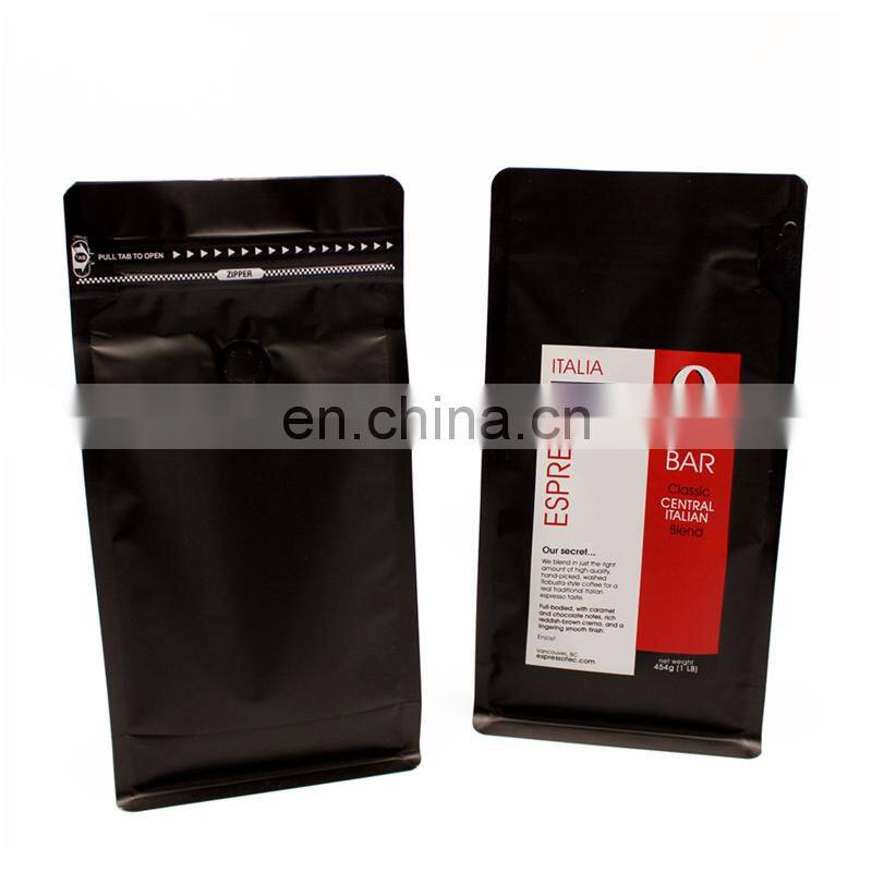 Custom Printed Resealable 250g 500g Matte Black Coffee Bags With Valve